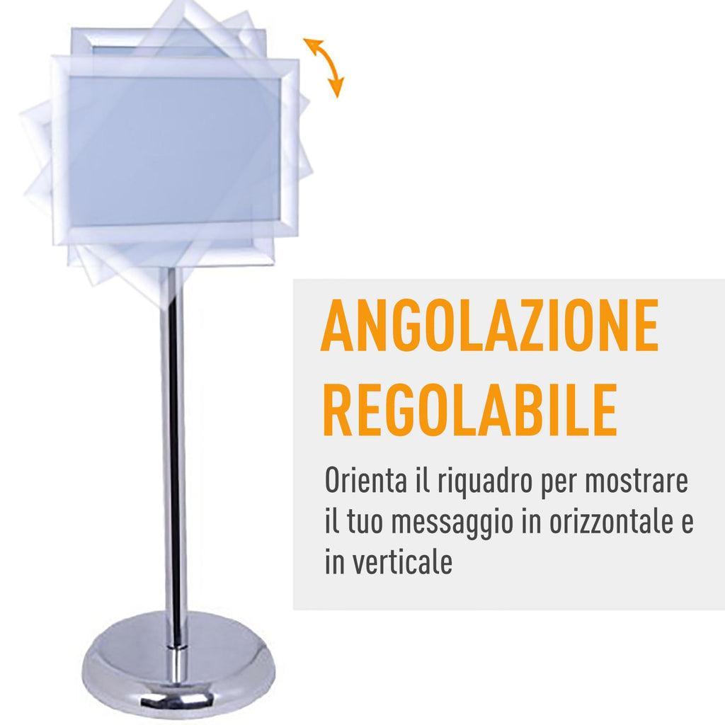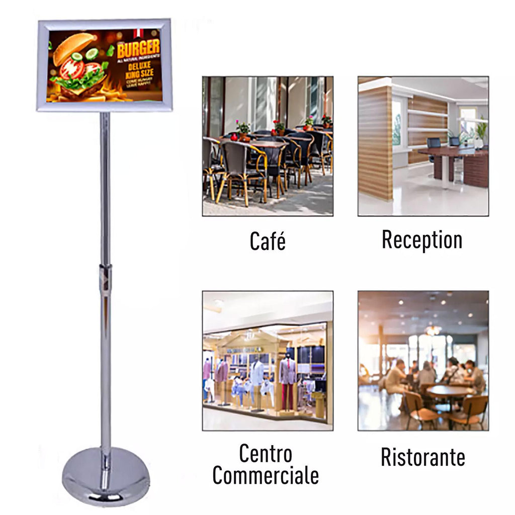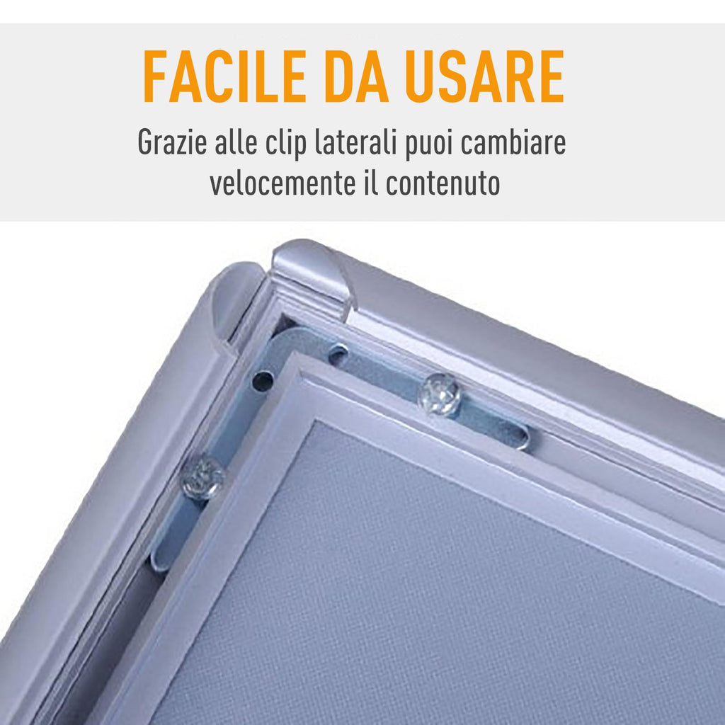 Aiutare i clienti è il tuo obiettivo principale, ogni giorno. Ma con un espositore condurli verso la soluzione giusta è più semplice: ti aiuta a mettere in evidenza informazioni utili, come avvertenze o il menù del giorno, e li guida nella scelta. Per questo, ha progettato per te un comodo supporto in lega di alluminio con altezza e angolazione regolabile. Puoi inserire il tuo cartello nella cornice, ripararlo usando l'apposito foglio trasparente in PVC, e orientarlo in orizzontale o in verticale. Usalo in negozio, al ristorante, in ufficio o fuori dall'ingresso: grazie alla base resterà sempre stabile, anche in caso di vento.