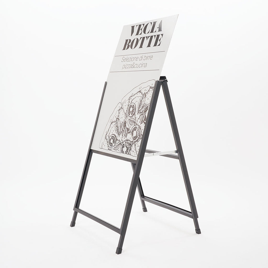 Espositore Pubblicitario Bifacciale a Cavalletto Pieghevole 90x120 cm in Metallo Nero