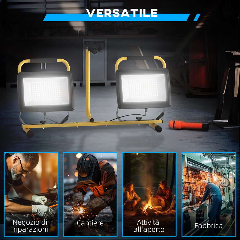 • FUNZIONALITÀ REGOLABILE: Ciascuna testa del faretto led può ruotare di 180° e la direzione del supporto è regolabile per un'illuminazione precisa e mirata. Il treppiede robusto è pieghevole per essere riposto e trasportato facilmente da un posto all'altro