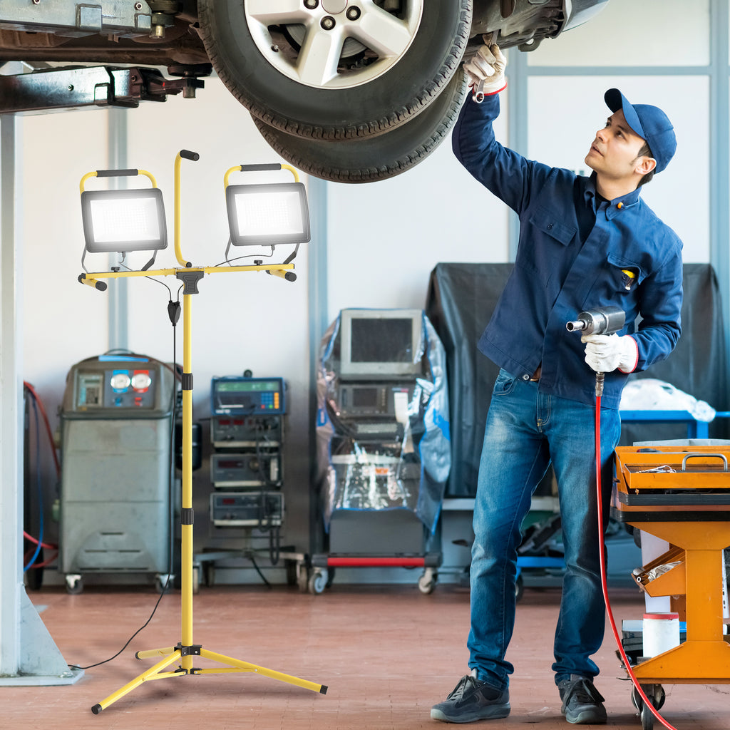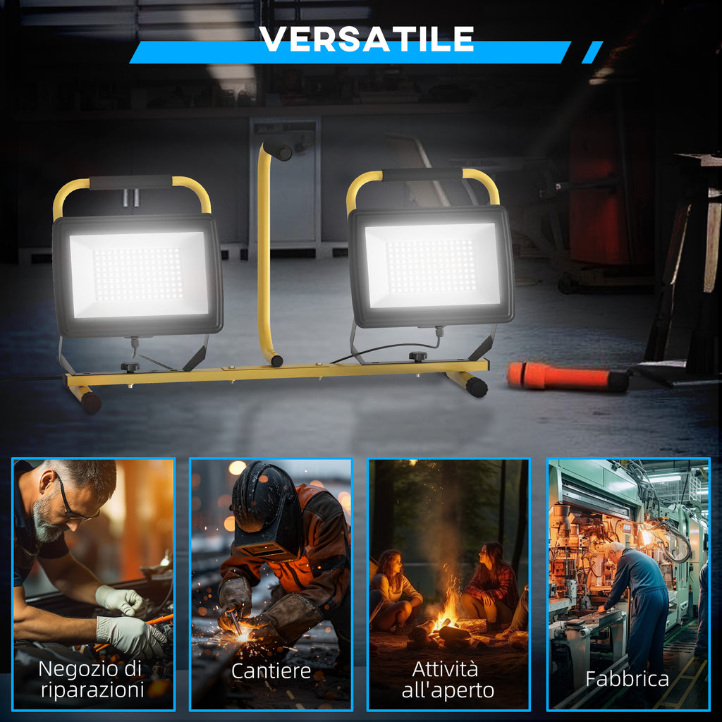 - FUNZIONALITÀ REGOLABILE: Ciascuna testa del faretto led può ruotare di 180° e la direzione del supporto è regolabile per un'illuminazione precisa e mirata. Il treppiede robusto è pieghevole per essere riposto e trasportato facilmente da un posto all'altro