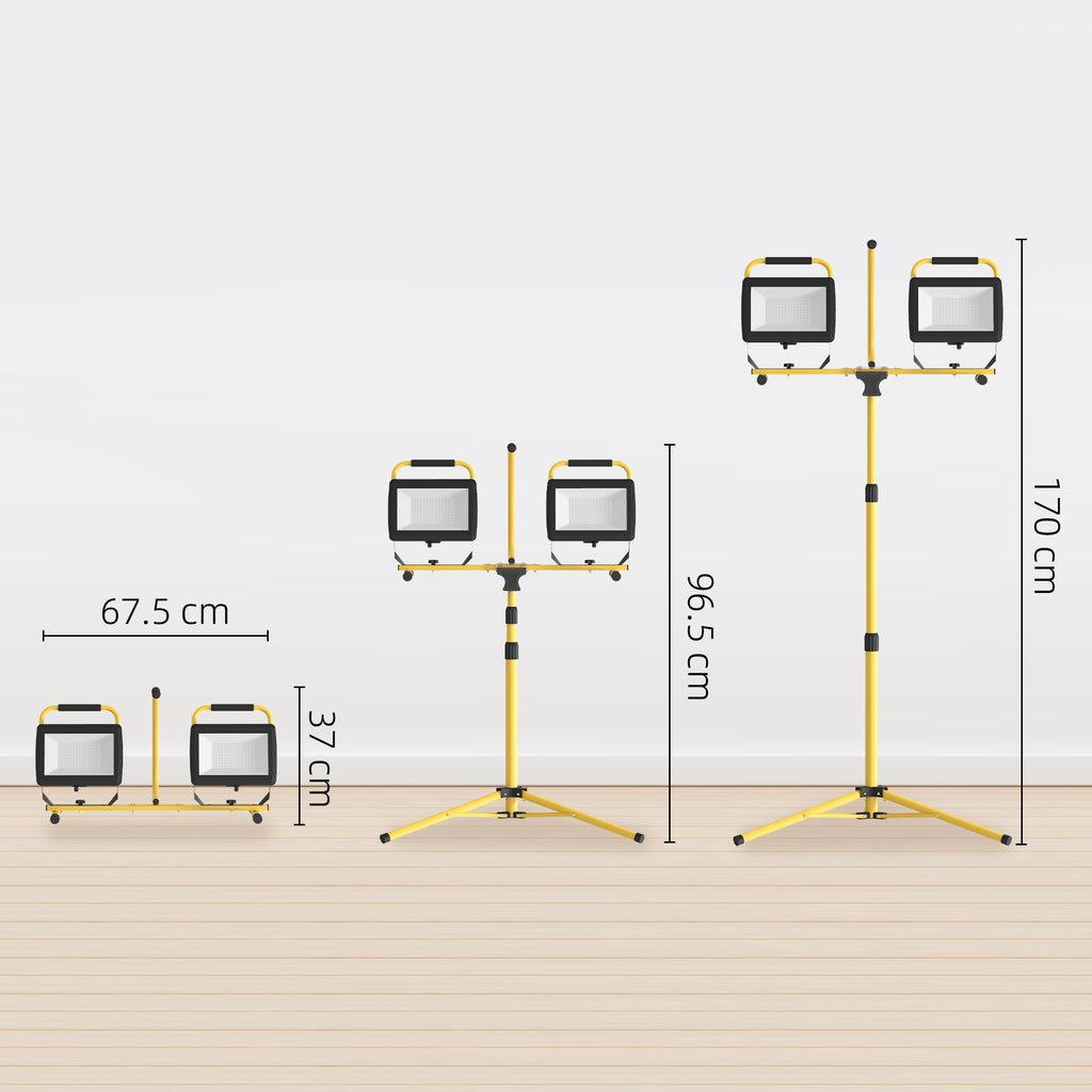 Faretti LED da Esterno IP65 75x62x170 cm da 6500K con Treppiede Staccabile Giallo e Nero