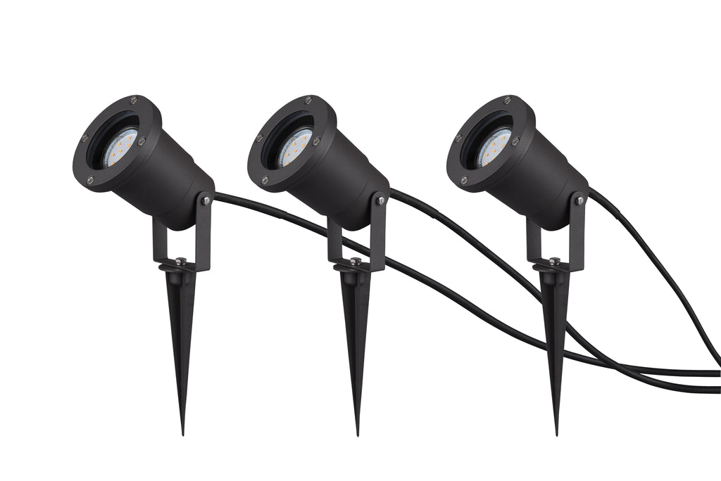 Ubangi Kit 3 Fari Da Esterno Con Picchetto Fusione Di Alluminio Antracite Ip54 Cavo 5 Metri + 2X3 Metri