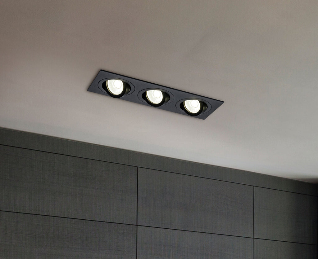 Faretto da incasso, orientabile a 25°. Corpo in Metallolo verniciato a polvere.