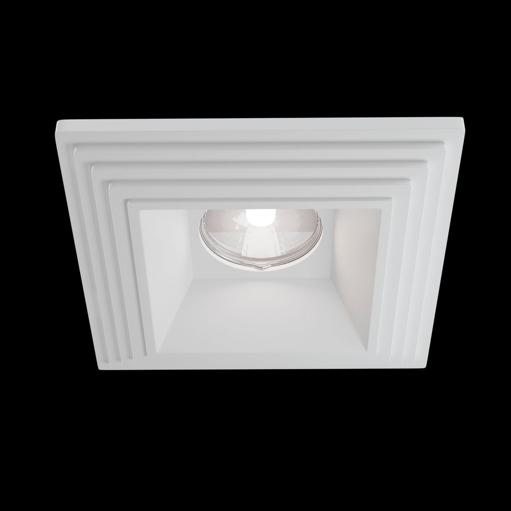 Faretto da incasso, corpo in gesso bianco. Verniciabile.
