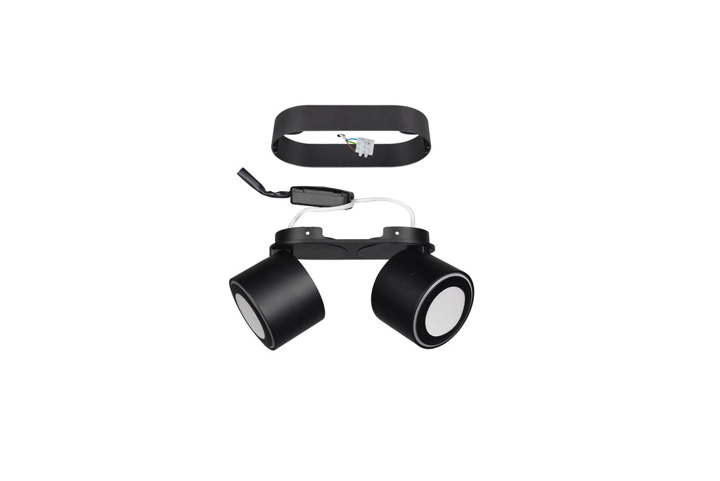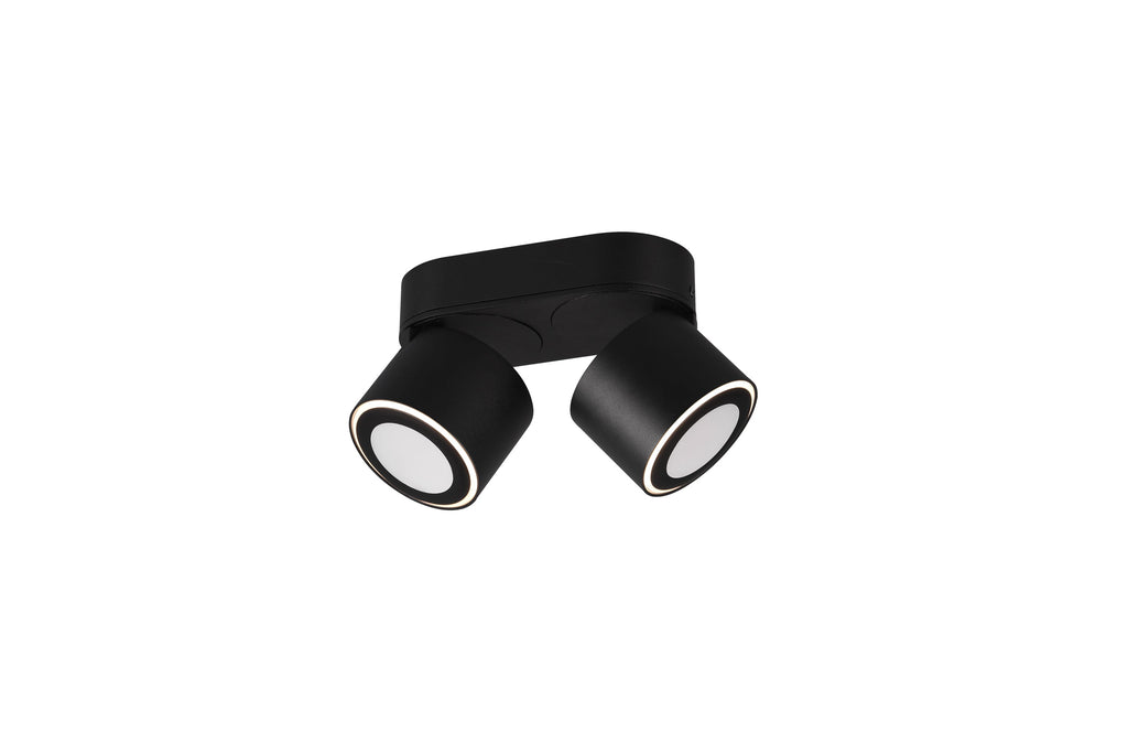 Taurus Barra 2 Spots Led Metallo Nero Orientabile Girevole Bi-Emissione Interruttori Separati L. 18Cm