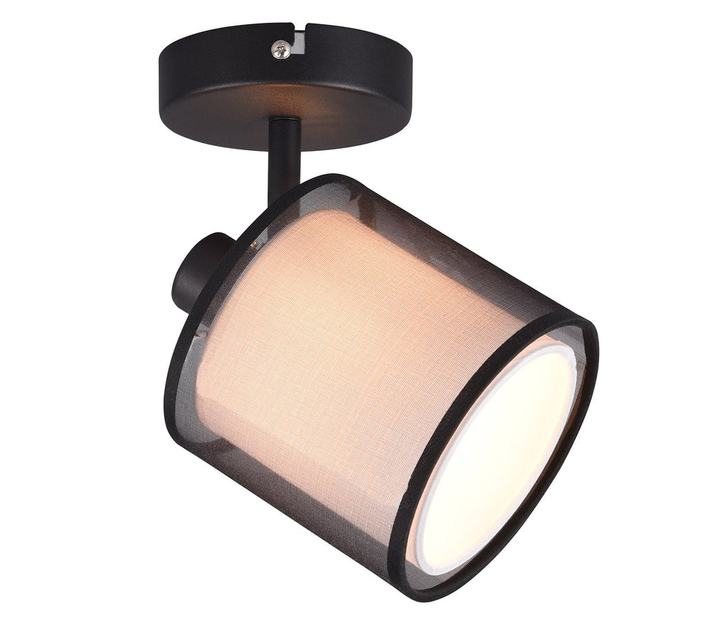 Burton Spot Singolo Orientabile Metallo Nero Paralume Bianco e Diffusore Esterno Traforato Nero H. 20Cm