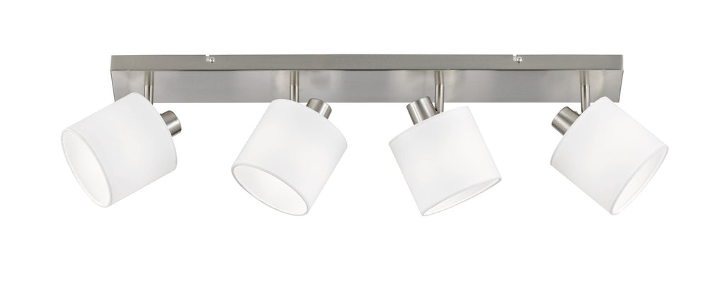 Tommy Barra 4 Spots Con Diffusori Paralumi Bianchi Base Metallo Acciaio Satinato L.75Cm
