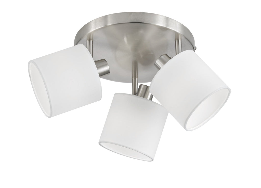 Tommy Plafoniera 3 Spots Con Diffusori Paralumi Bianchi Base Metallo Acciaio Satinato D.25Cm