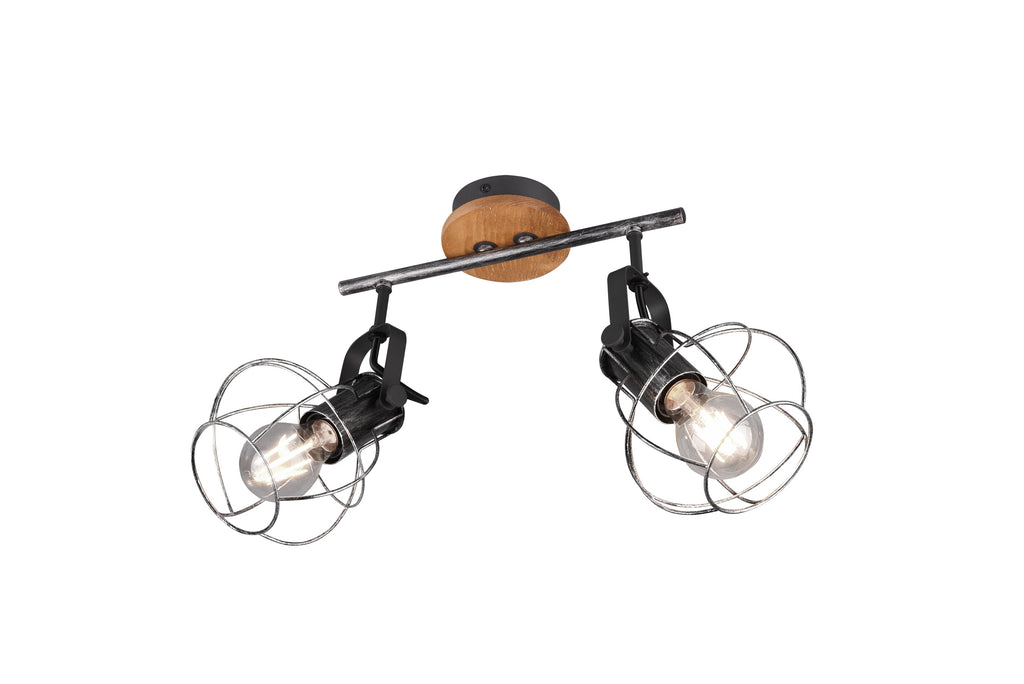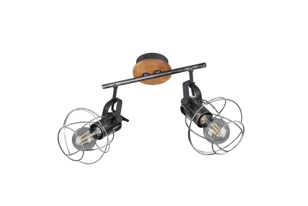 Madras Barra 2 Spots Legno E Metallo Effetto Argento Anticato L.30Cm