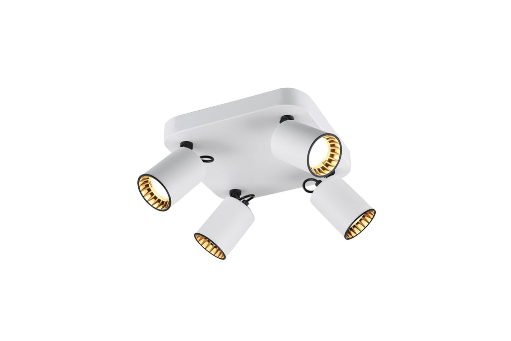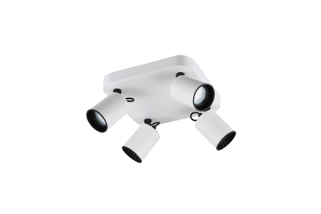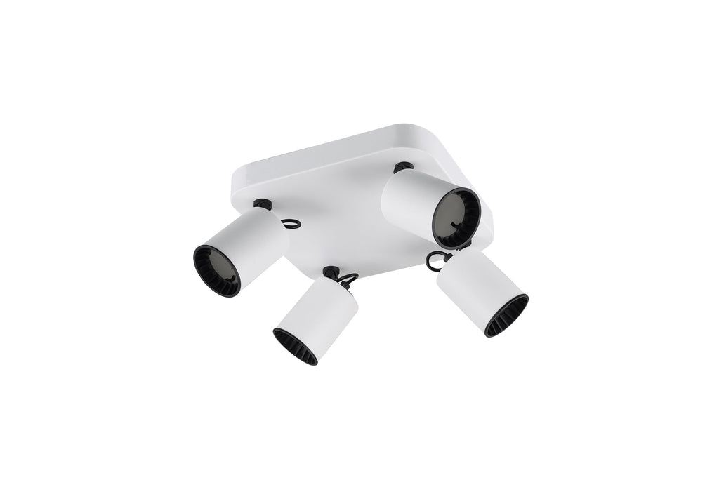 Pago Plafoniera 4 Spots Cilindri Metallo Bianchi E Anelli Interni Nero L. 24 X 24 Cm