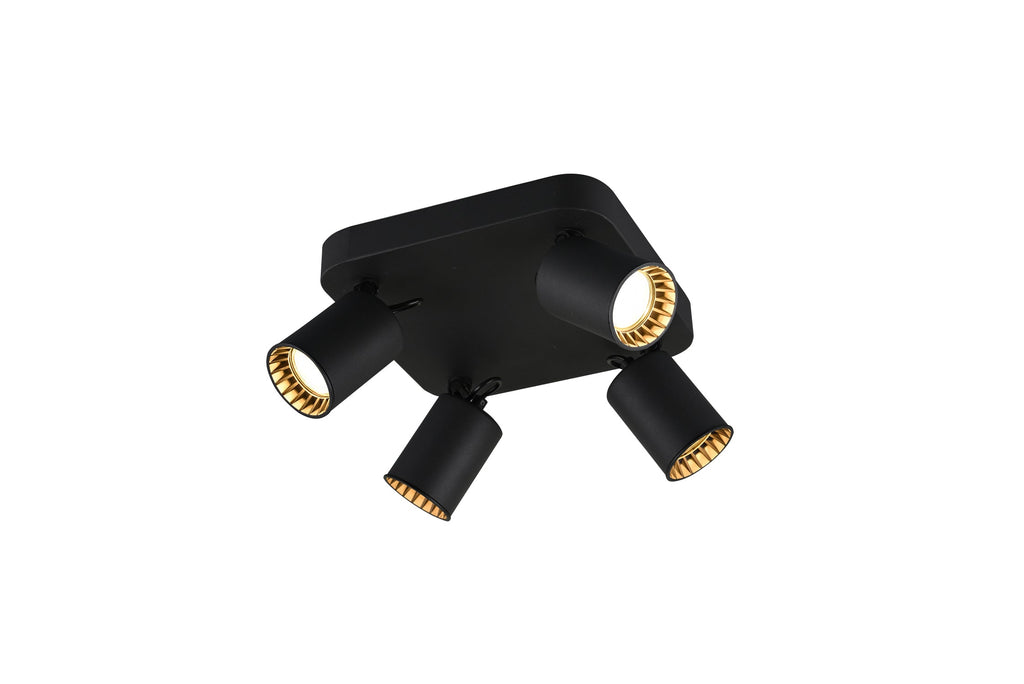 Pago Plafoniera 4 Spots Cilindri Metallo Nero L. 24 X 24 Cm