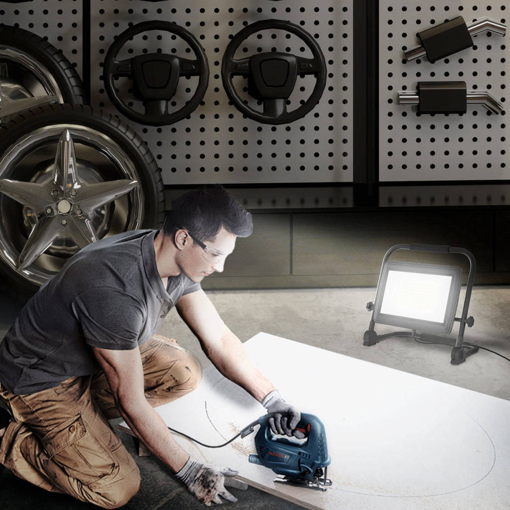 • ALTA LUMINOSITÀ: La nostra lampada LED offrono un flusso luminoso di 8500 lumen e una temperatura di colore di 6500K, migliorando notevolmente la visibilità per lavori con scarsa luce nel settore edile, nelle attività all'aperto, in fabbrica ecc...