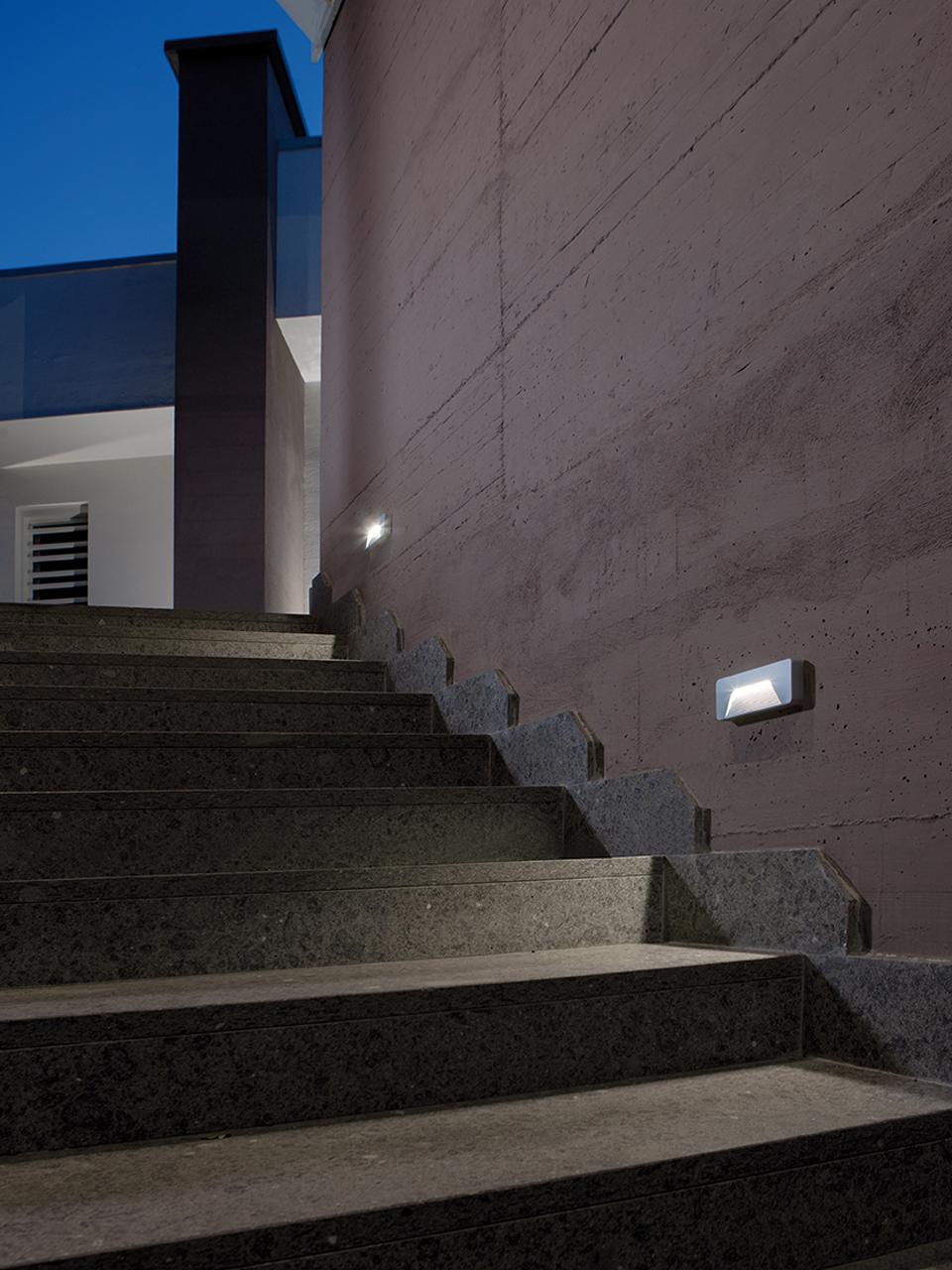 Faretto Segnapassi a Semi Incasso da Esterno a LED Rettangolare Riflettente Sovil Club Alluminio