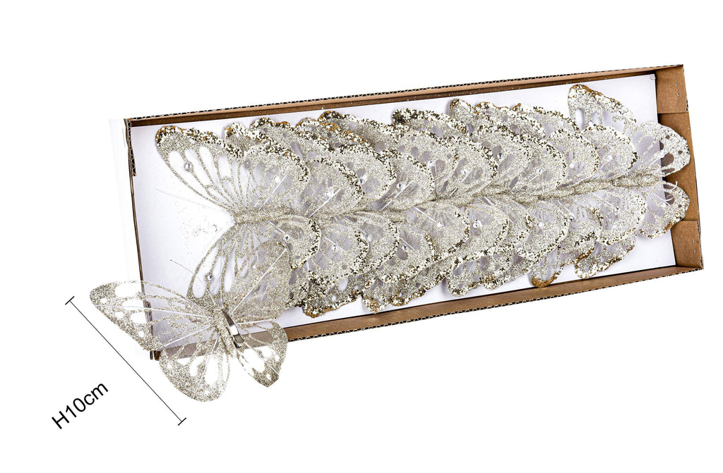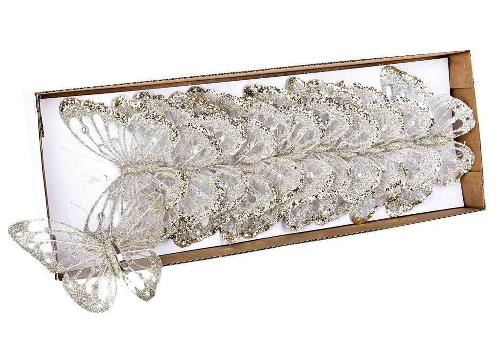 Farfalle con Glitter e Clip 24 Pezzi Ø10 cm Champagne