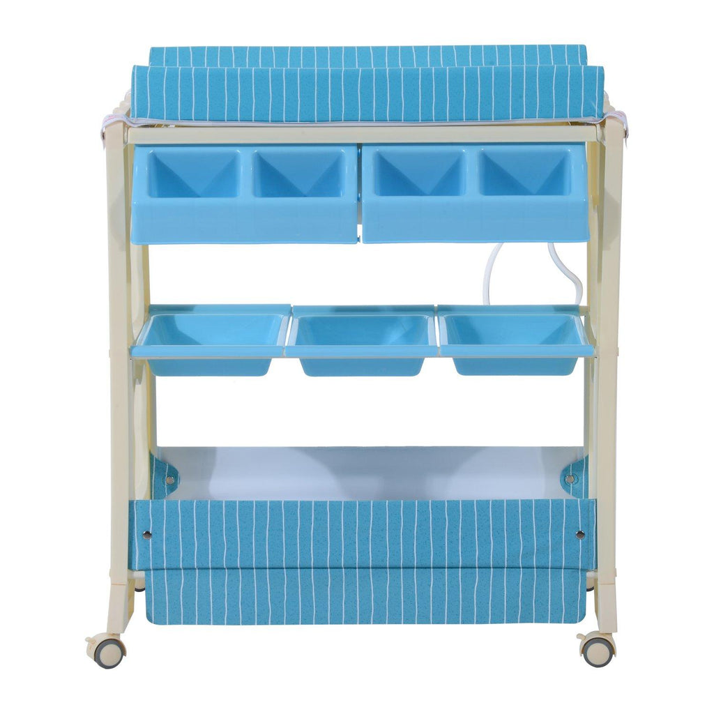 Fasciatoio con Vaschetta e Vani Portaoggetti in Plastica Atossica Blu 81x53x102 cm