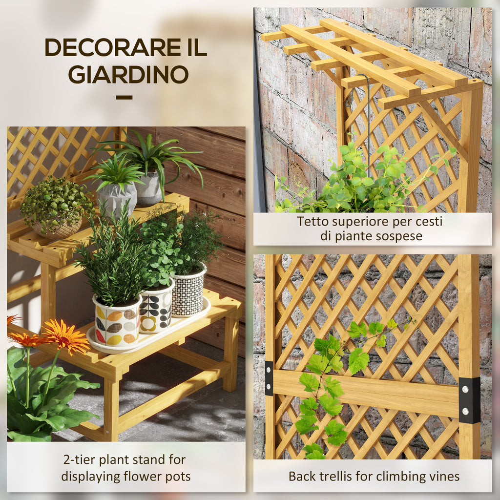 Metti in mostra le tue piante con la nostra fioriera con grigliato a 2 livelli di. Non avrai quindi solo spazio per l'esposizione di piante e vasi da fiori, ma il traliccio posteriore e il tetto superiore ti offriranno un'area adatta a sostenere piante rampicanti, fotografie varie e luci LED per valorizzare lo spazio esterno. Realizzata in legno di abete massiccio, questa fioriera da giardino si rivela resistente per l'uso all'aperto.