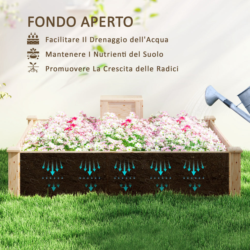 Fioriera da Esterno 123x123x25,5 cm con Compostiera e Fondo Aperto in Legno di Abete