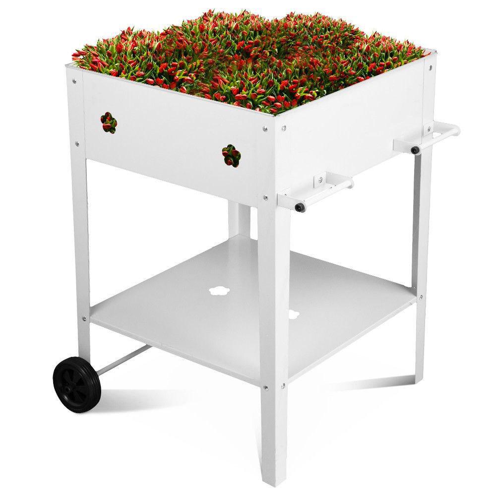Fioriera Orto Rialzato da Giardino 57x57x80 cm in Metallo con Ruote Bianco