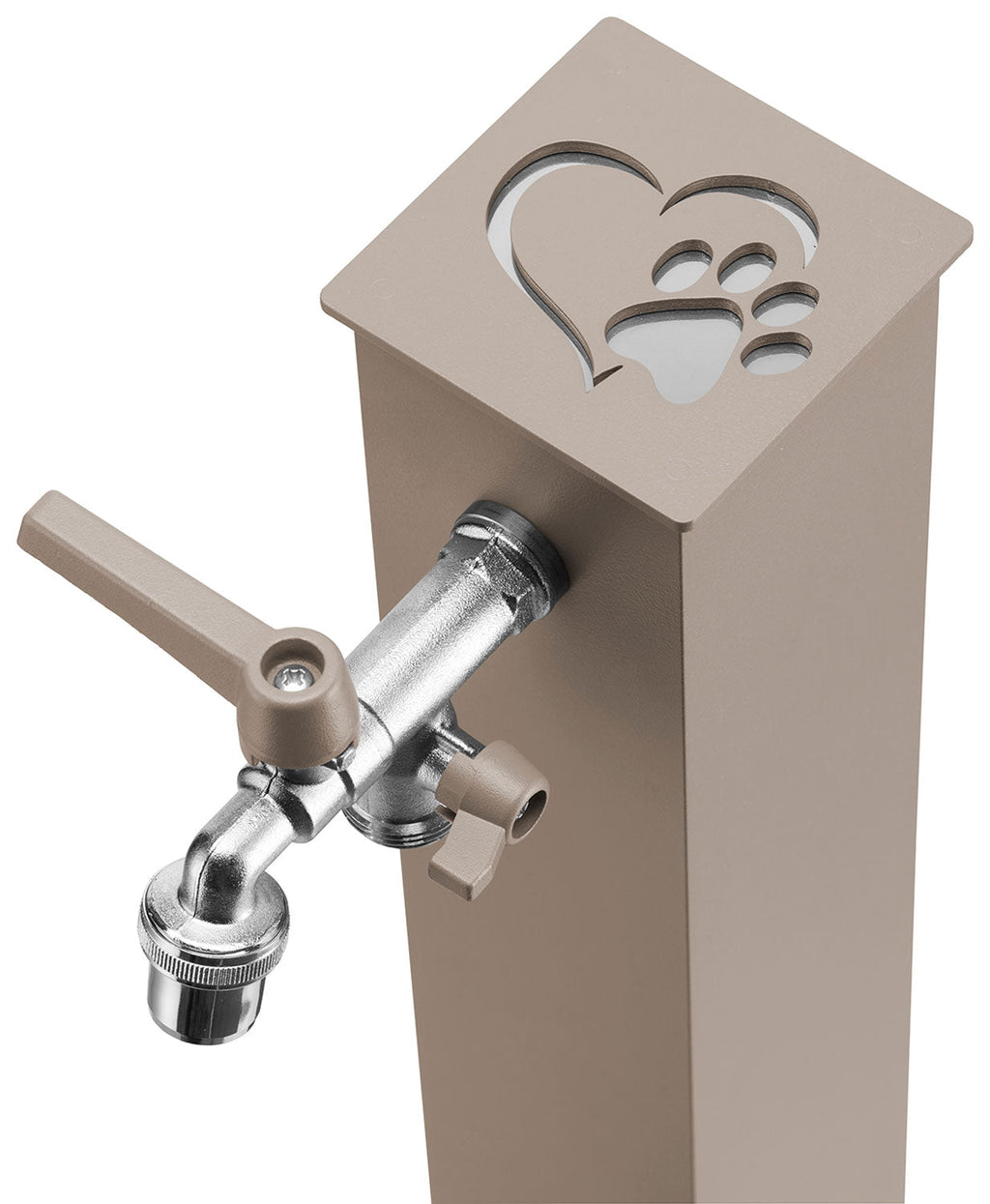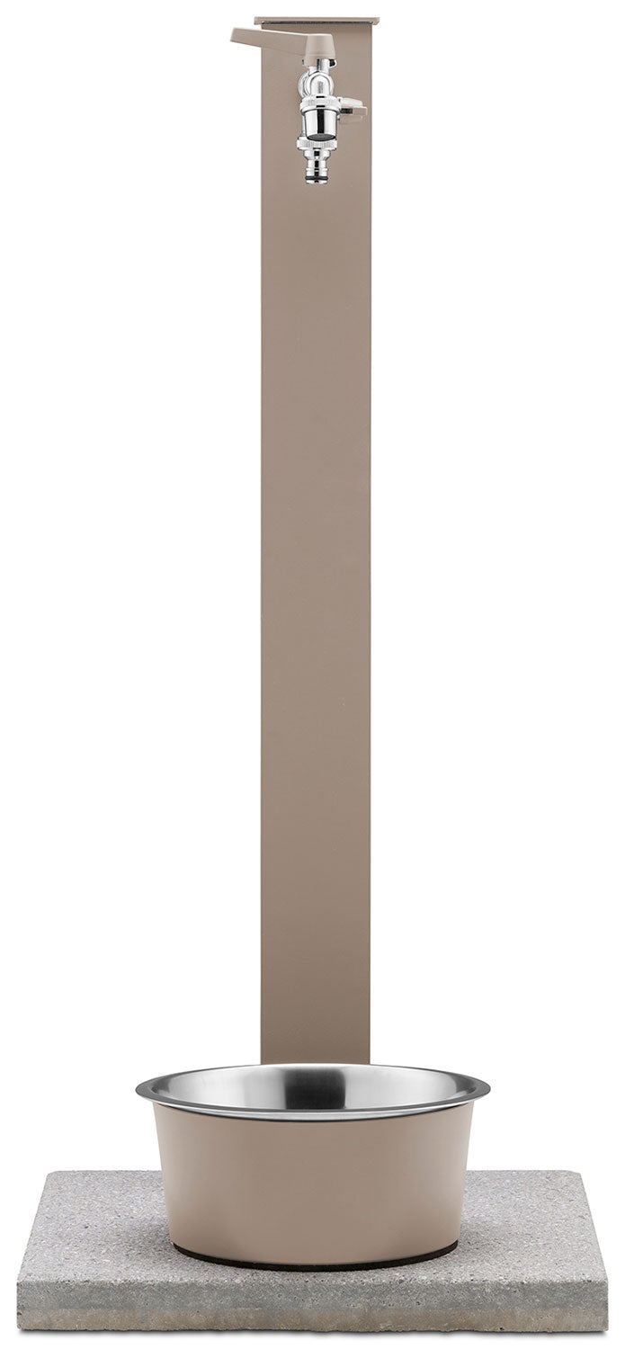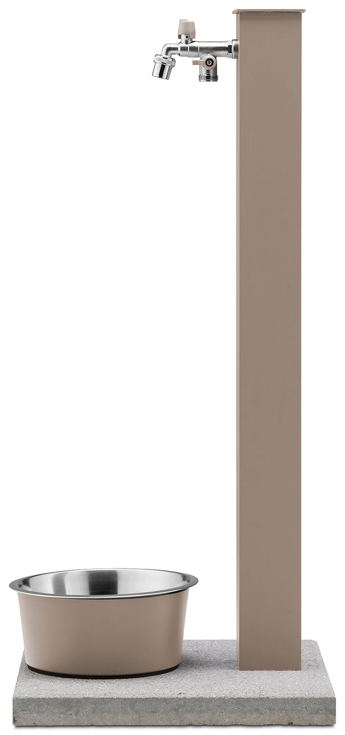 Fontana a Colonna Rubinetto Doppio in Ottone con Base e Vaschetta Abbeveratoio Belfer 42/REX-R Tortora