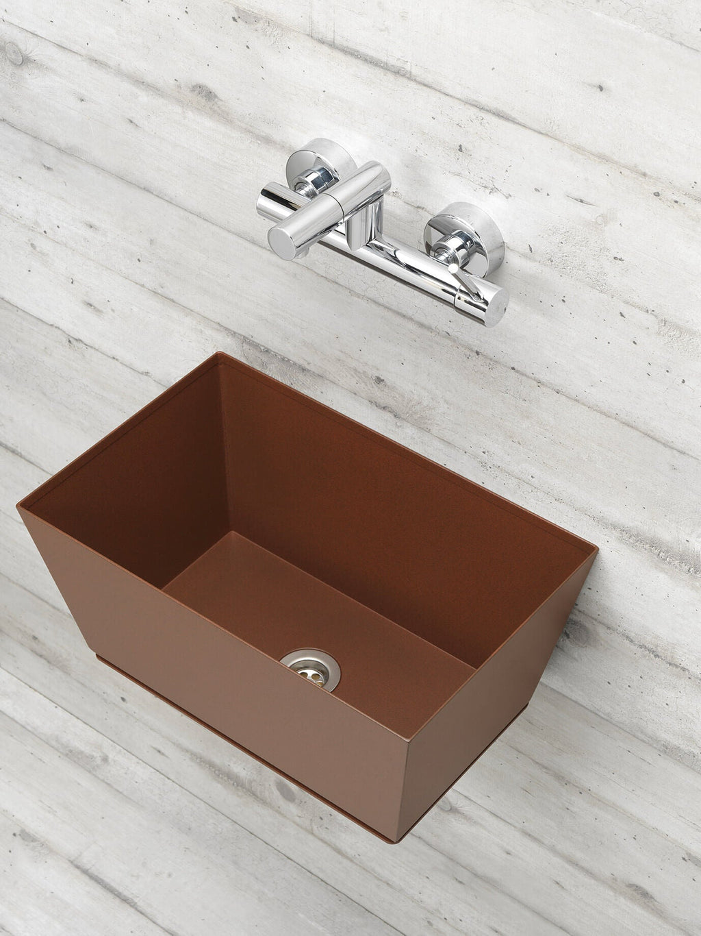 Fontana a parete da giardino dal design innovativo e originale, 42/PRQM con Miscelatore e Vasca Rettangolare della Belfer.
