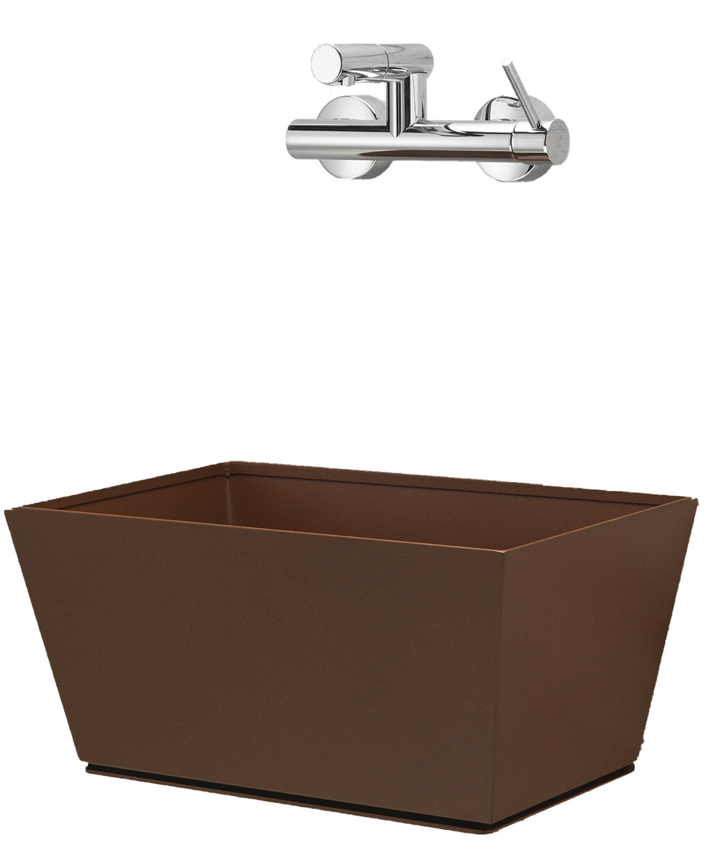 Fontana a Parete da Giardino con Miscelatore e Vasca Belfer 42/PRQM Ruggine