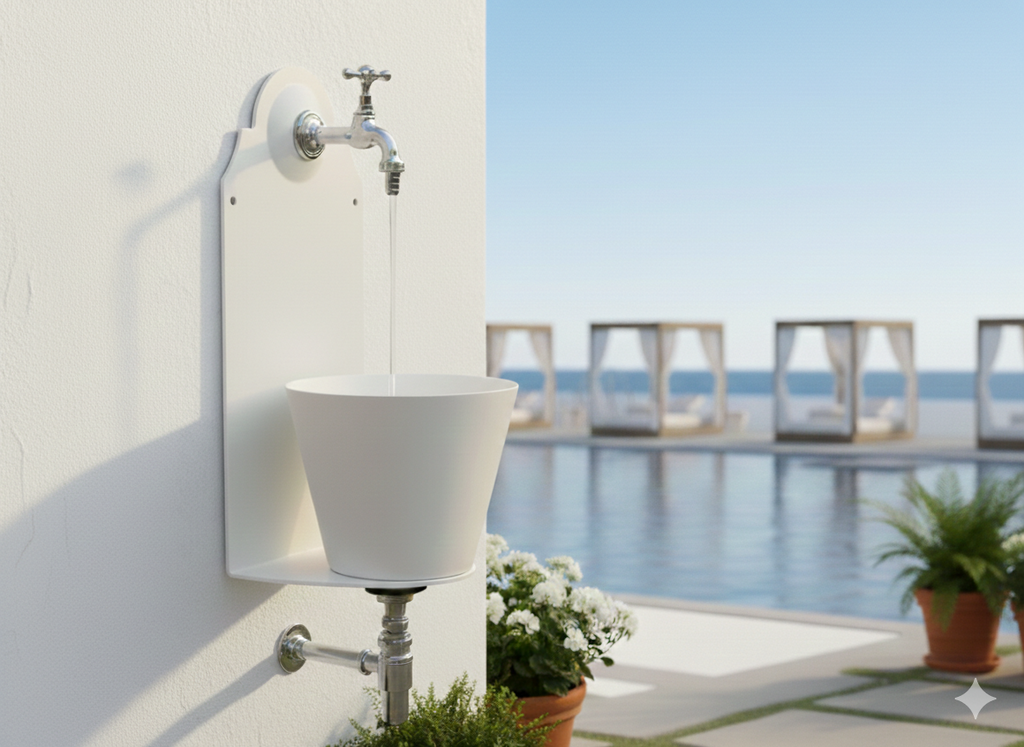 Fontana a Parete da Giardino con Rubinetto Belfer 42/PR Bianca