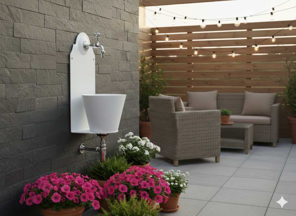 Fontana a parete da giardino dal design innovativo e originale, 42/PR con Rubinetto della Belfer.