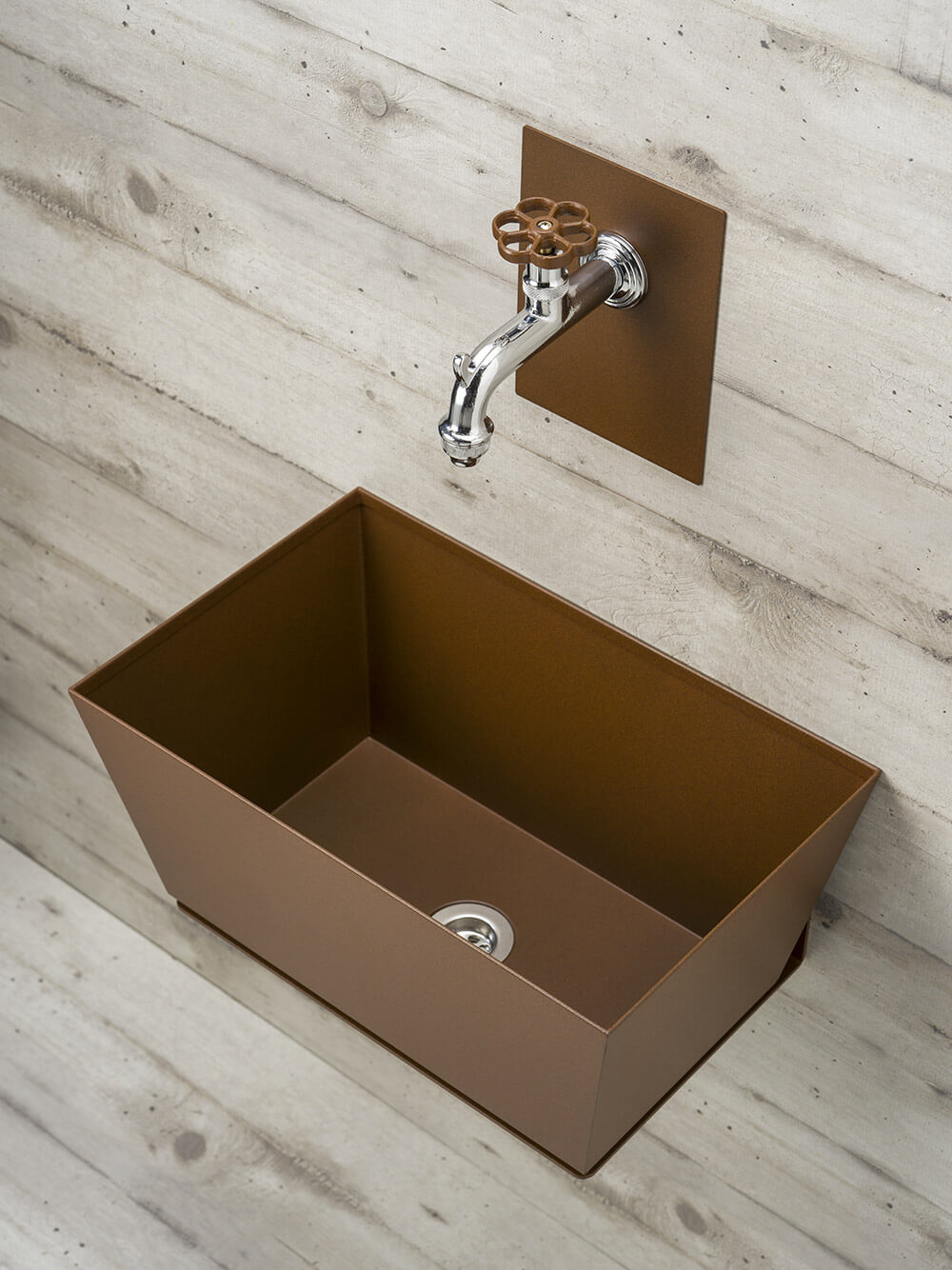 Fontana a Parete da Giardino con Rubinetto e Vasca Belfer 42/PRQ Ruggine