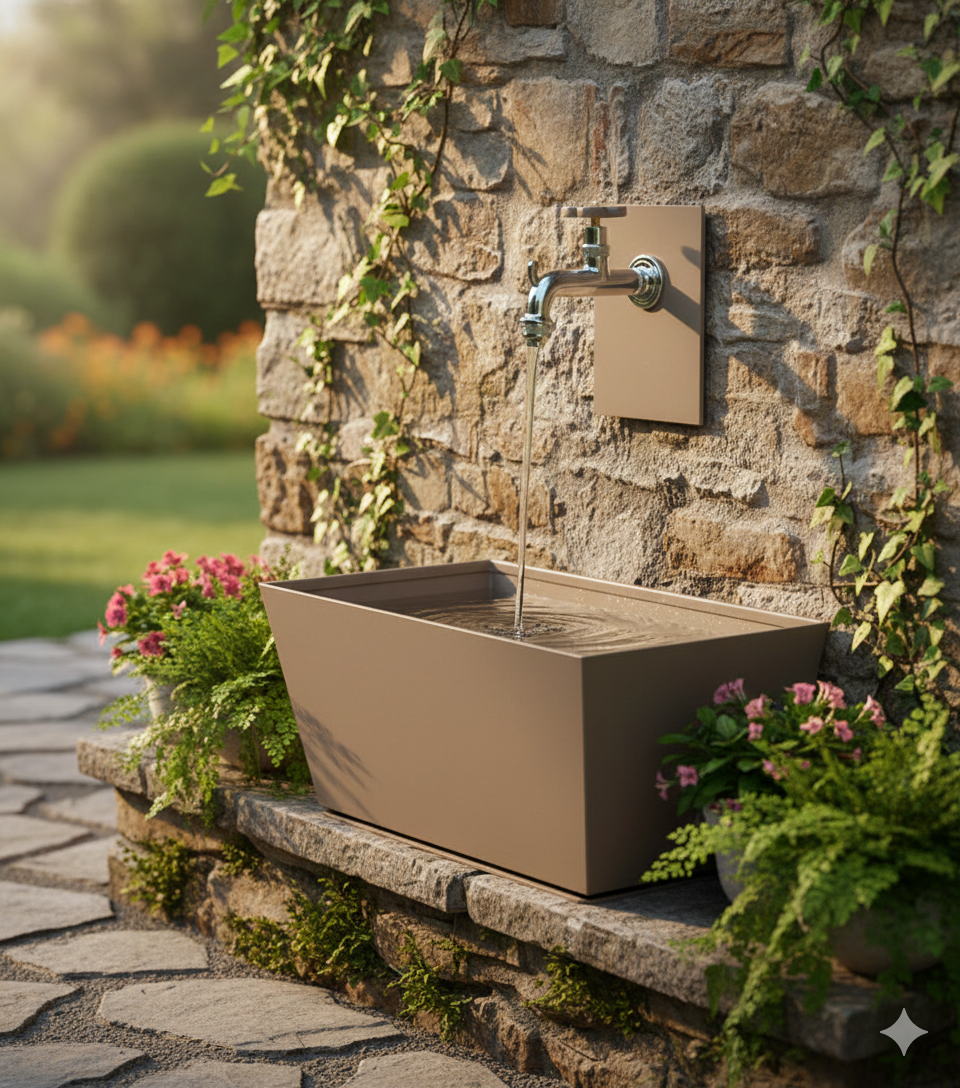Fontana a Parete da Giardino con Rubinetto e Vasca Belfer 42/PRQ Tortora