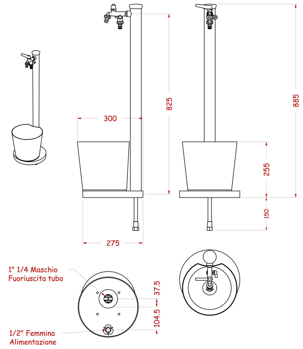 Fontana alta da giardino con Vaschetta dal design innovativo e originale, 42/SRV con Rubinetto a sfera con doppio attacco della Belfer.