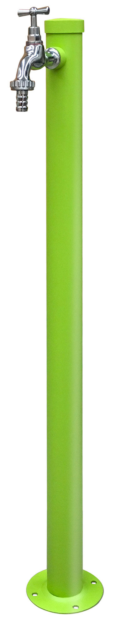 Fontana da giardino in acciaio-alluminio con trattamento antiruggine e verniciatura verde acido. Rubinetto cromato e tubo in acciaio inox con dado da 1/2" F incluso.