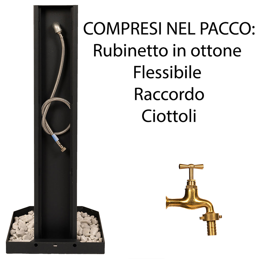 Compresi nella fontanella rubinetto in ottone, raccordo e flessibile. Design moderno a colonna, Colore Antracite, Rubinetto in ottone, flessibile e raccordo inclusi, portatubo, smontabile all'occorrenza, compreso.
