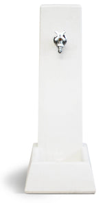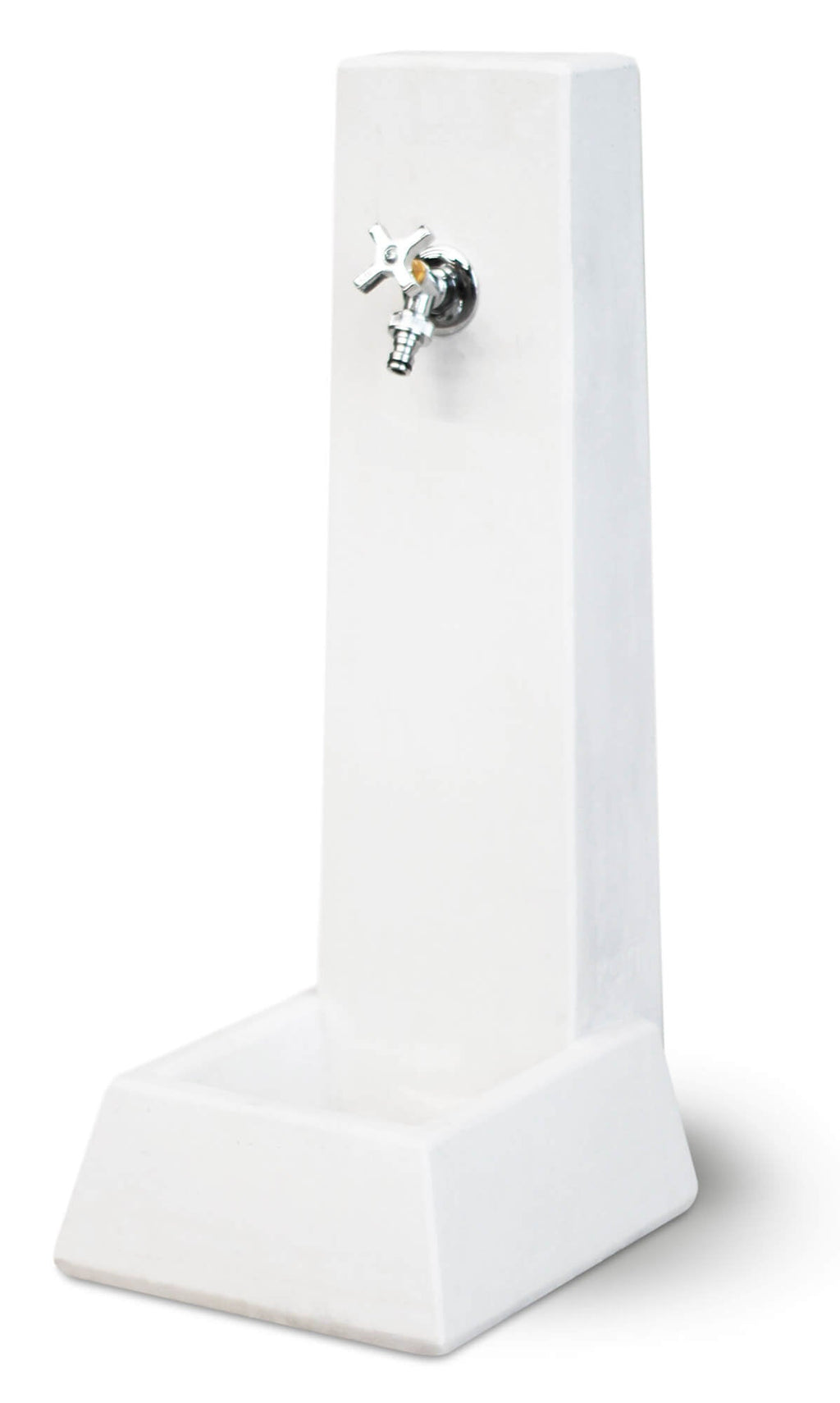 Fontana da giardino in cemento e granulato di marmo Il design della fontana Malmo è minimal e contemporaneo. Malmo è una fontana da giardino ispirata alle linee geometriche e semplici delle nuove abitazioni. Realizzata in cemento bianco e granuto di marmo. Le variazioni di colore e consistenza fanno parte delle caratteristiche naturali del calcestruzzo, e non hanno alcuna incidenza sull'integritè strutturale del prodotto, nè devono essere considerate come difetti del materiale, del design o della lavorazione. Infatti durante il processo di colata, l'aria resta intrappolata all'interno del calcestruzzo e può talvolta causare la formazione di piccoli fori superficiali, che possono variare in dimensioni e densitè. Questa caratteristica trama contraddistingue l'estetica del calcestruzzo. Il calcestruzzo per natura non ha una tinta uniforme, anche a causa del numero variabile di materiali di cui è composto. Le variazioni di tono e consistenza creano talvolta effetti e sfumature uniche che sono parte integrante della bellezza di questo materiale. All'interno della colonna è predisposta la tubazione da 1/2" che porta l'acqua al rubinetto. Alla fontana può essere abbinato qualunque rubinetto con attacco M 1/2". La fontana può essere posizionata direttamente sull'erba del giardino. Prodotto 100% Made in Italy