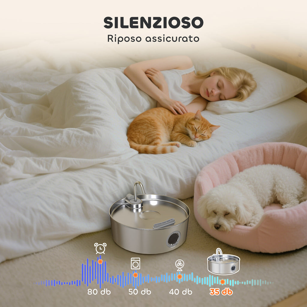 • IN ACCIAIO INOX: Realizzata in acciaio inox 304 di alta qualità, questa fontana per gatti è facile da pulire ed è più salutare. Il design igienico impedisce la formazione di macchie scure sul mento dei gatti, assicurando una bevuta più igienica e sicura