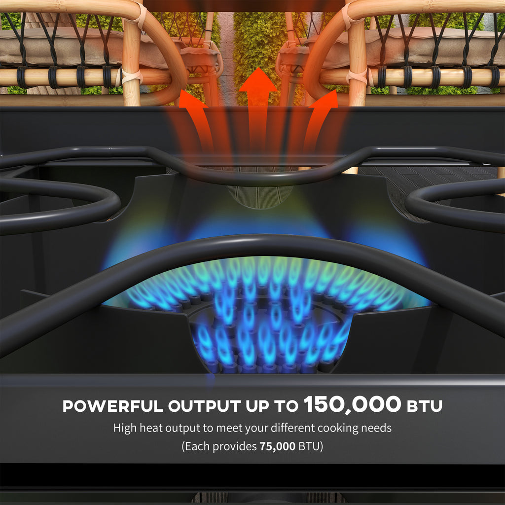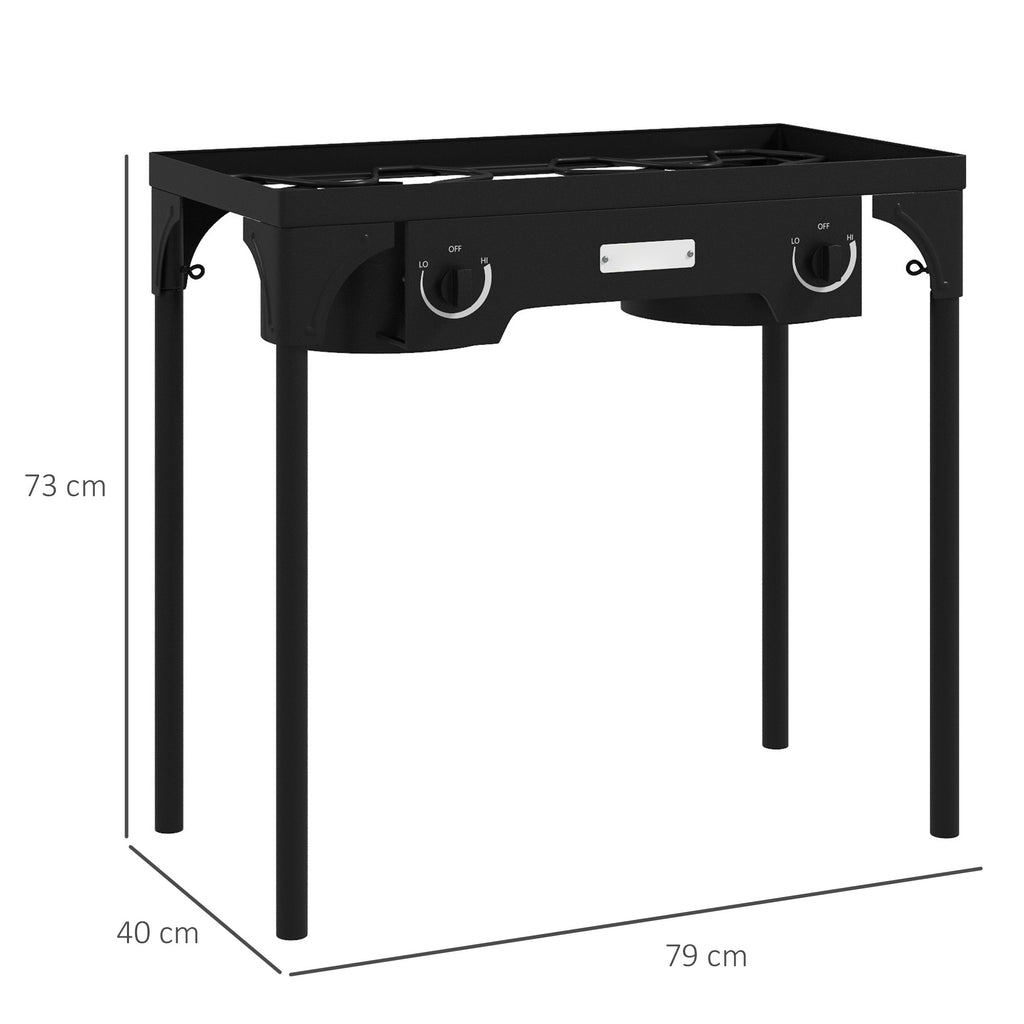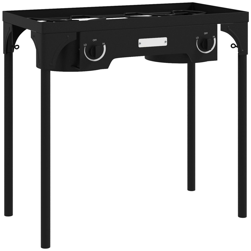 Fornello a Gas da Campeggio con 2 Bruciatori 150,000 BTU in Metallo con Gambe Rimovibili Nero