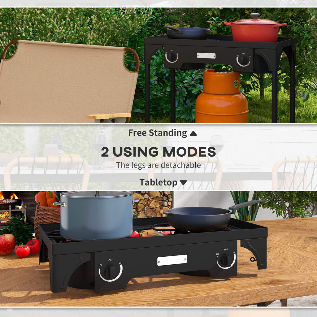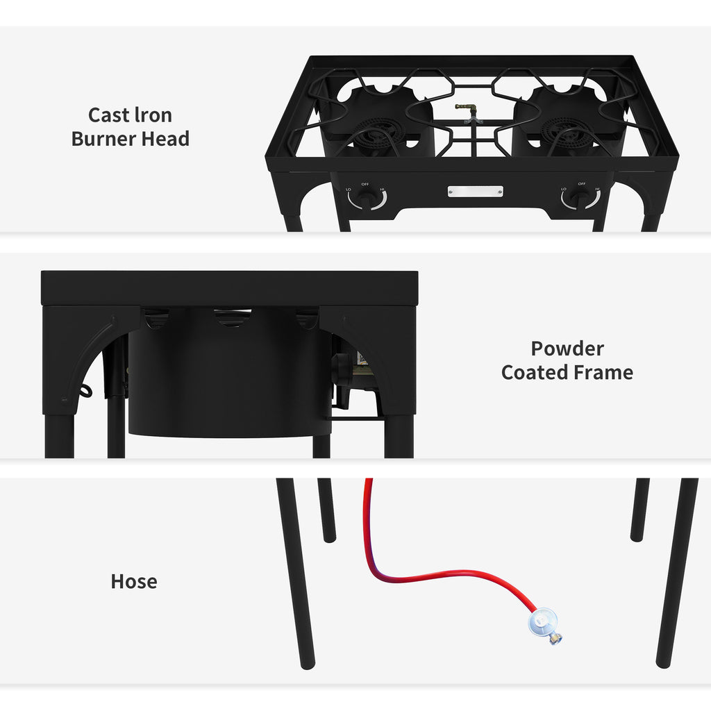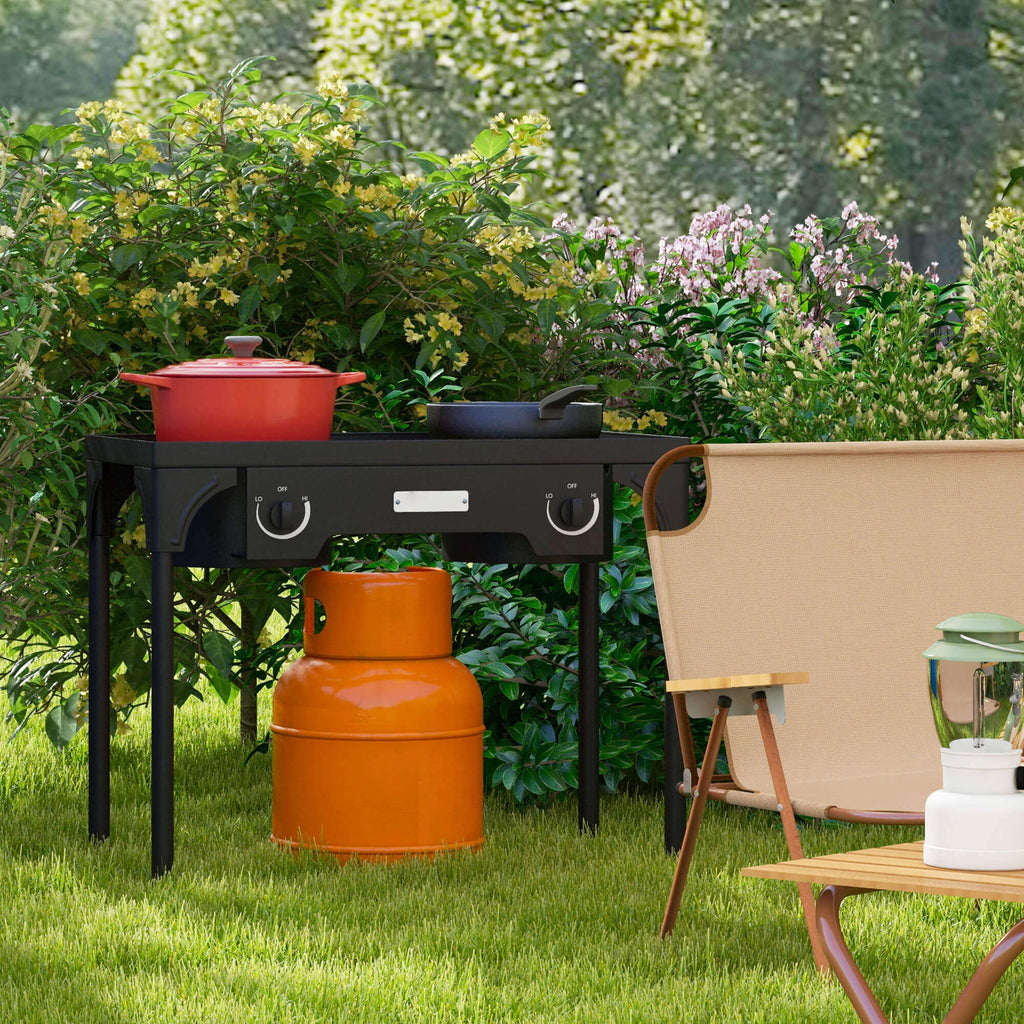 Fornello a Gas da Campeggio con 2 Bruciatori 150,000 BTU in Metallo con Gambe Rimovibili Nero