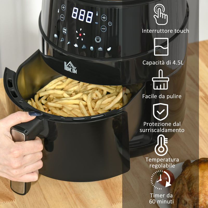 Friggitrice Elettrica ad Aria Calda 1500W Capacità 4,5 Litri Nera