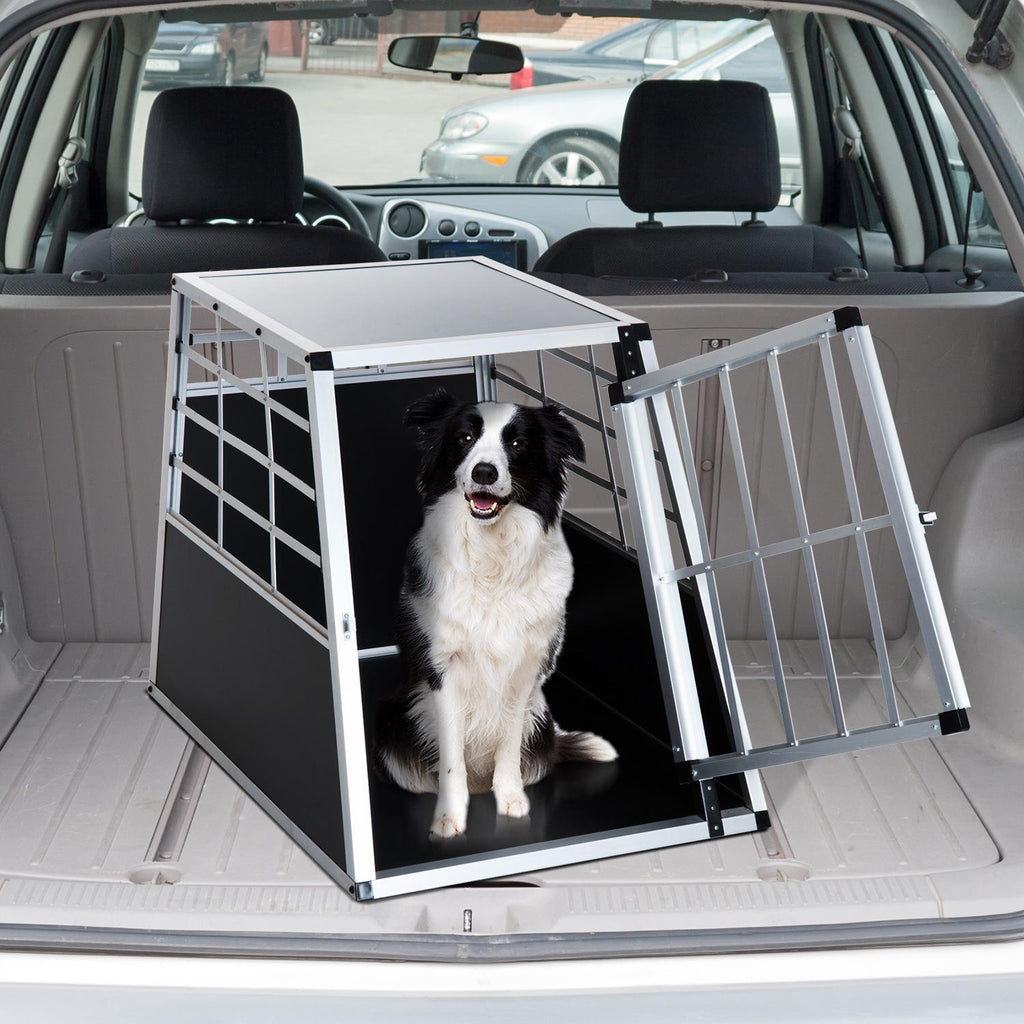Gabbia Box per Trasporto Cani Lega d'alluminio Nero argento 65x91x69 cm
