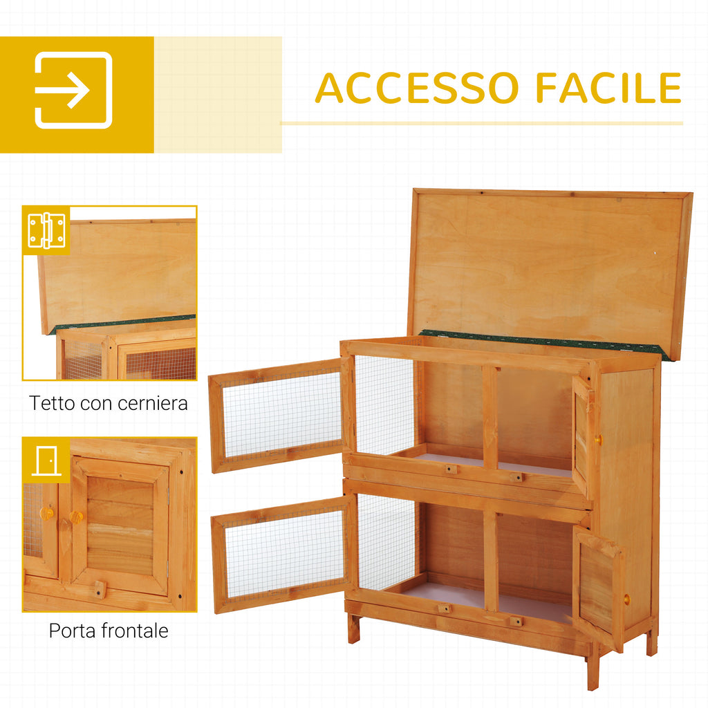 Realizzata in legno di abete super robusto e durevole, la gabbia fornisce un ambiente confortevole per i vostri conigli.