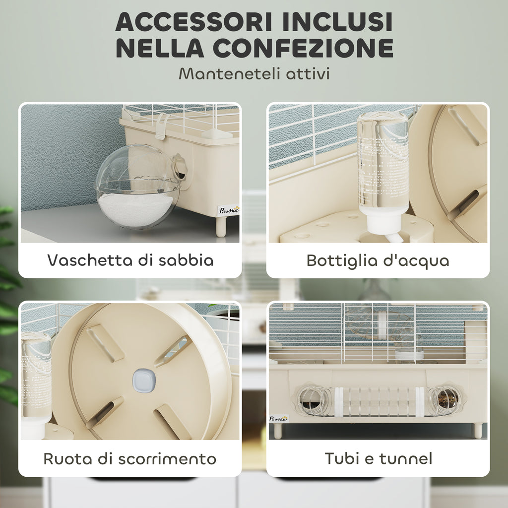 Gabbia per Criceti a 2 Livelli 44,5x28x44 cm 3 Porte Ruota e Tubi in Acciaio e PP Crema e Bianco