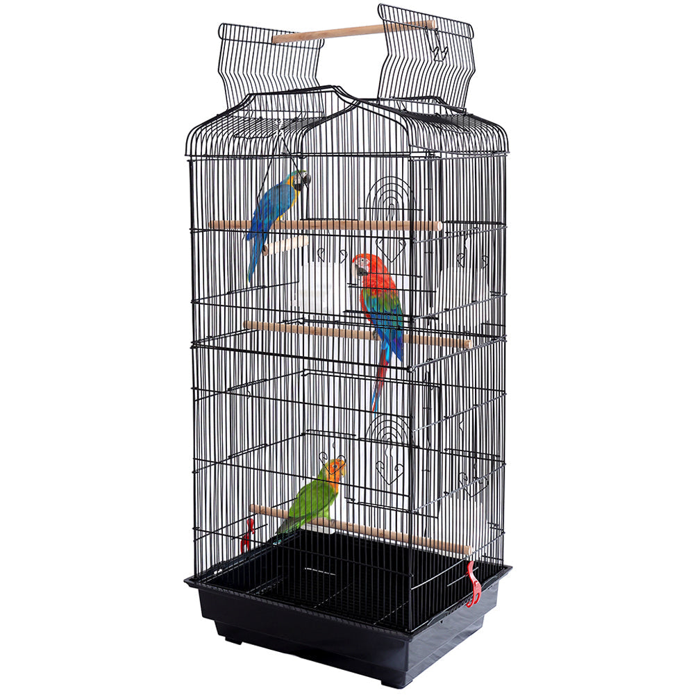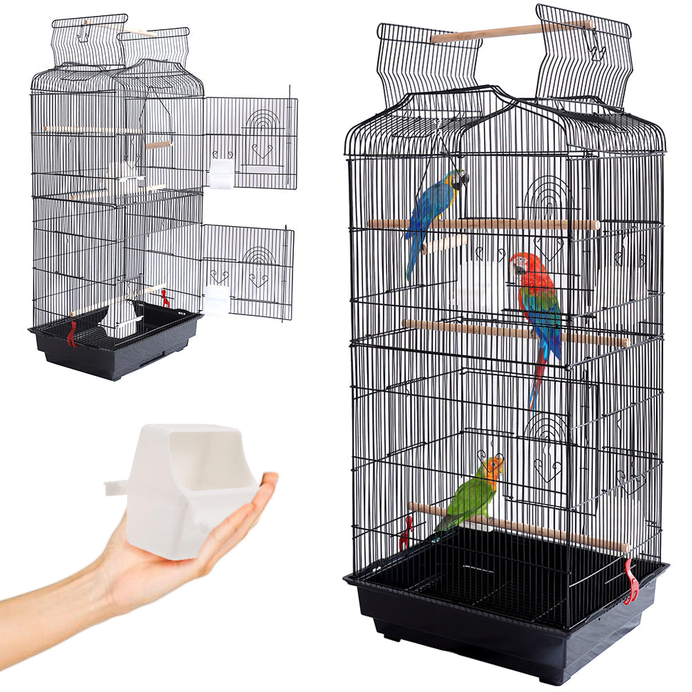 1 x Gabbia Voliera per Uccelli Nera per Pappagalli Inseparabili con Tetto Apribile