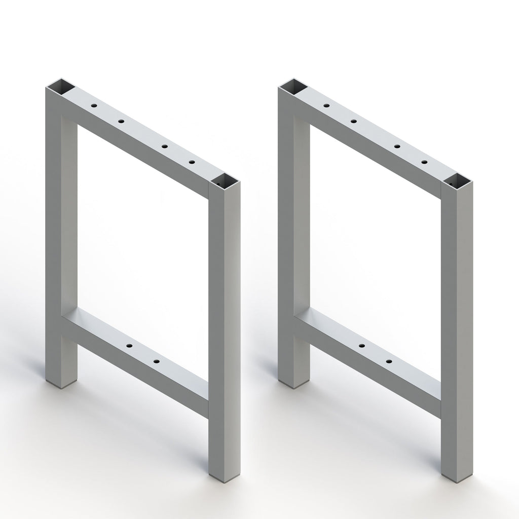Lotto di gambe laterali in alluminio per il montaggio di pancheper spogliatoi, palestre o negozi di scarpe. Il set comprende due o tre gambe rettangolari da 30 x 30 mm per montare le panche alla lunghezza desiderata.