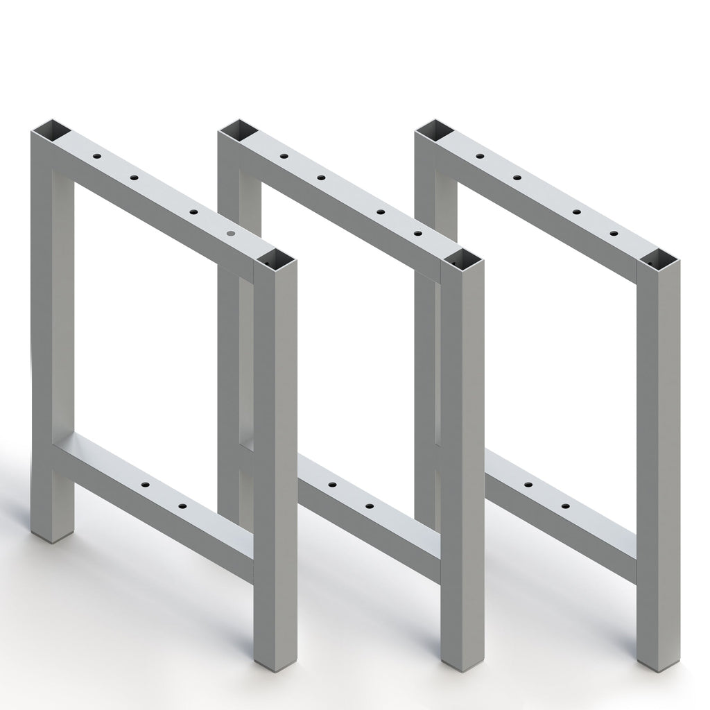 Lotto di gambe laterali in alluminio per il montaggio di pancheper spogliatoi, palestre o negozi di scarpe. Il set comprende due o tre gambe rettangolari da 30 x 30 mm per montare le panche alla lunghezza desiderata.