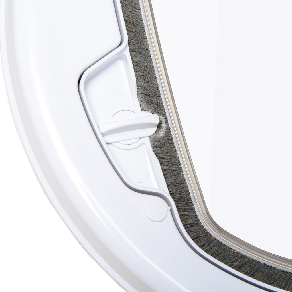 - RESISTENTE ALLE INTEMPERIE: La porta basculante è dotata di guarnizione per proteggere da vento e infiltrazioni d'acqua. Le calamite integrate aiutano a mantenere lo sportello sempre in posizione dopo ogni passaggio.