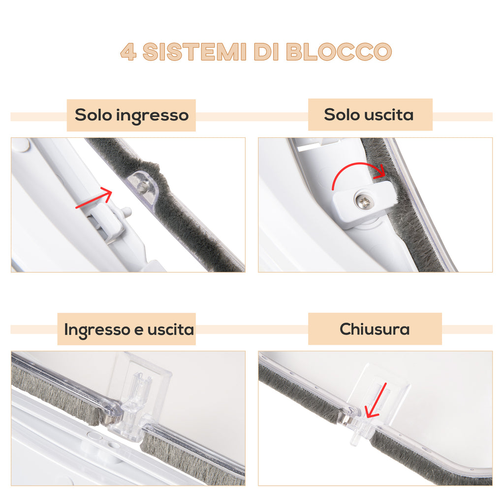 - 4 SISTEMI DI BLOCCO: La gattaiola ti offre 4 diverse opzioni di blocco, tra le quali solo ingresso, solo uscita, ingresso e uscita, chiusura. Il sistema perfetto per il passaggio di cani e gatti.