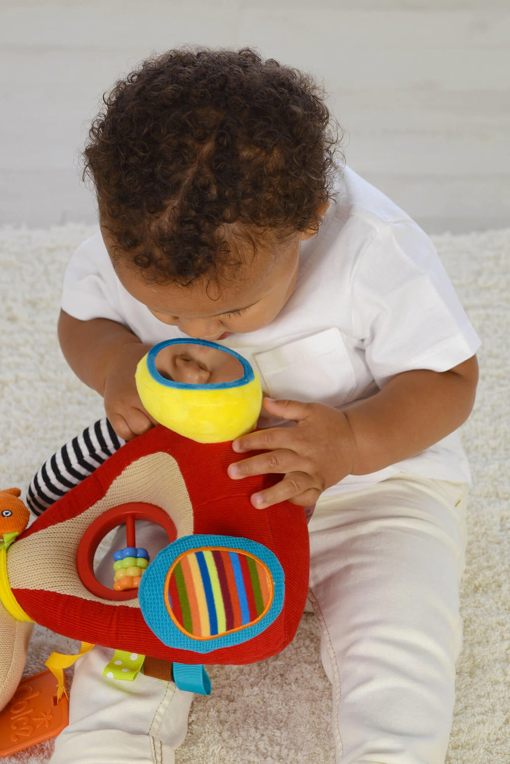 Il nostro bellissimo Gatto Siamese ha come migliore amico un topolino che suona se viene schiacciato, un pesce scricchiolante, un sonaglio con perline colorate e molte altre attività che il bambino può imparare mentre gioca. Come per tutti i nostri meravigliosi giocattoli educativi, ne incoraggiamo l'utilizzo per la narrazione di favole durante il momento della nanna.