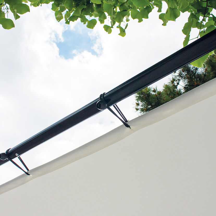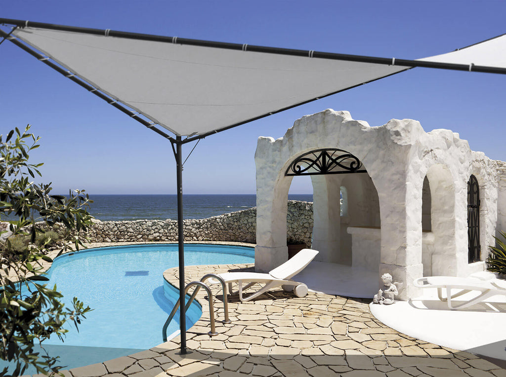 La vela rappresenta la soluzione ideale che combina valorizzazione estetica e funzionalità degli spazi esterni. La struttura con connettori in acciaio ed i resistenti tendicorda permettono una impeccabile tensione del telo ed una capacità di ombreggiare superfici di grandi dimensioni. L'altezza e l'ampiezza della superficie interessata ne consentendo molteplici utilizzi, dalla realizzazione di vere e proprie aree relax a bordo piscina o in giardino, a spazi destinati a convivialità per banchetti e zone ristoro arredati con poltrone e divanetti. Il design innovativo ma sobrio a forma romboidale rende questo prodotto armonico sia in ambienti in stile moderno che classico.