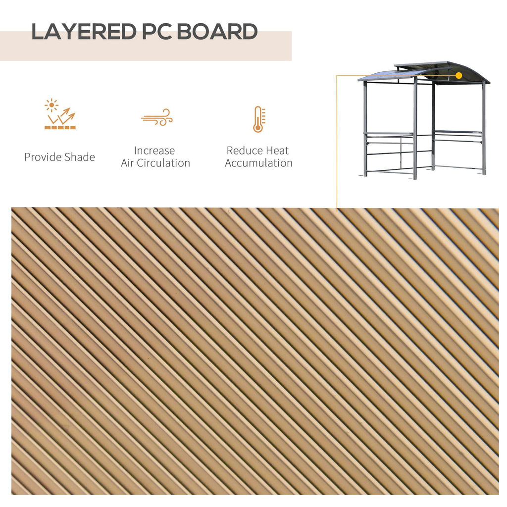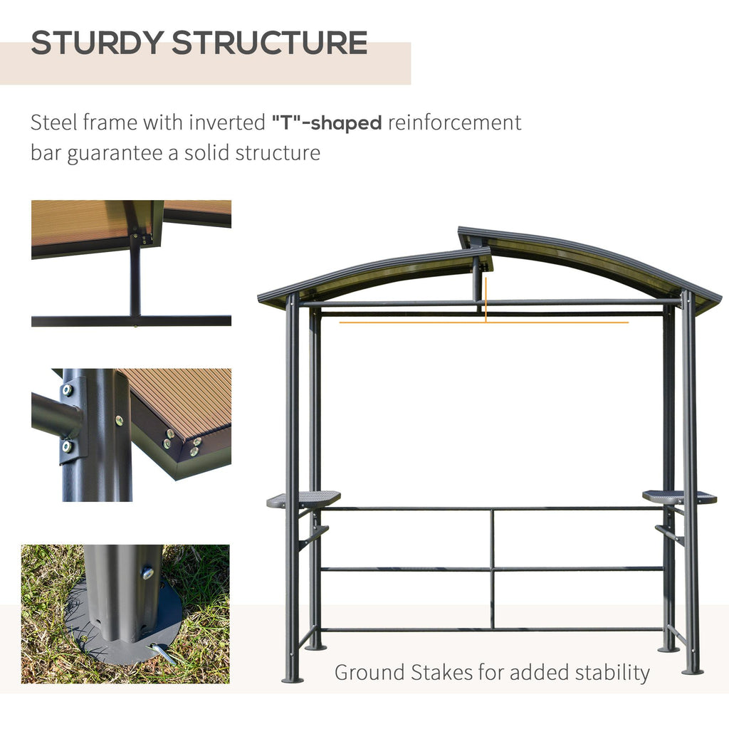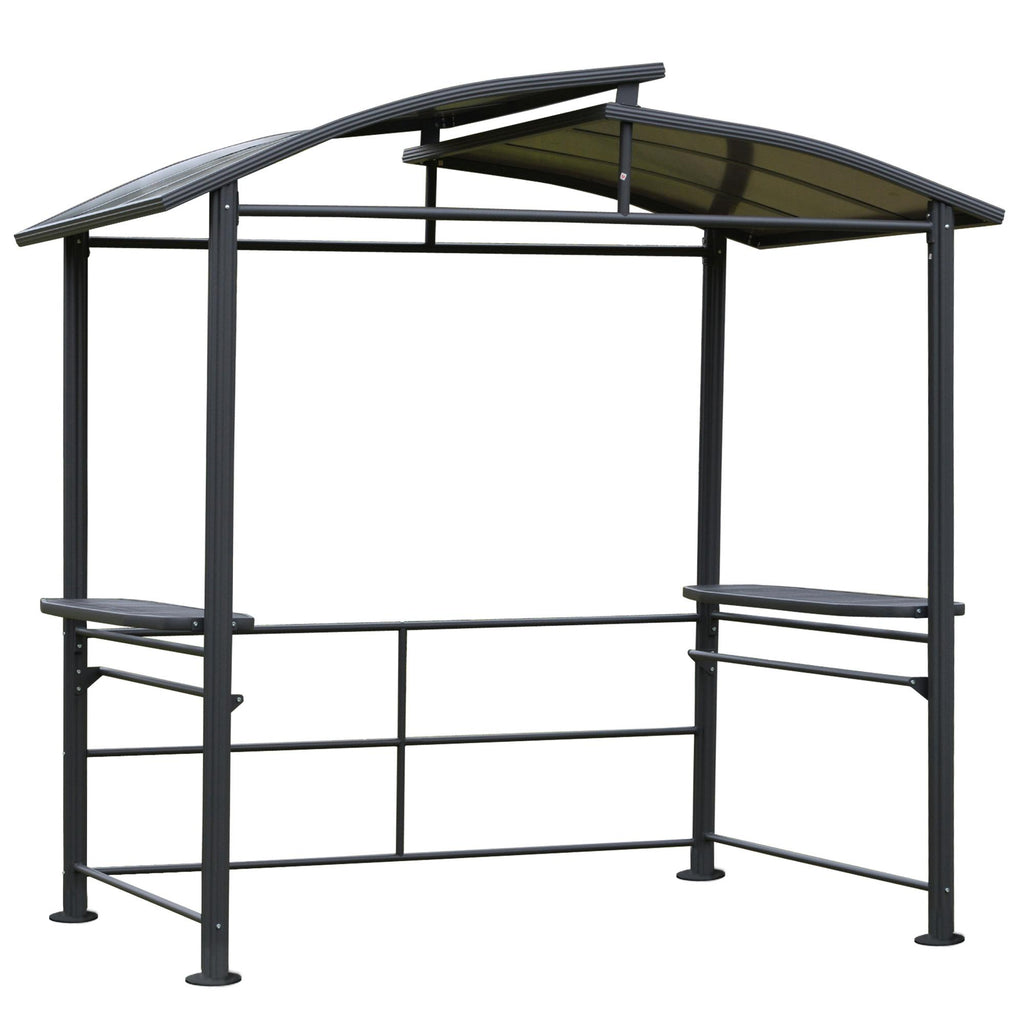 Assicurati di essere sempre al riparo dalla pioggia e dal sole forte mentre stai grigliando con questo gazebo da giardino ! Il tetto in policarbonato del nostro gazebo per barbecue è resistente ai raggi UV e alla pioggia. Inoltre, ci siamo assicurati di includere mensole laterali e aste con il tettuccio del gazebo, in modo da riporre facilmente piatti e strumenti in un unico posto. Il design del tetto su 2 livelli è progettato per mantenere l'area barbecue ben ventilata.