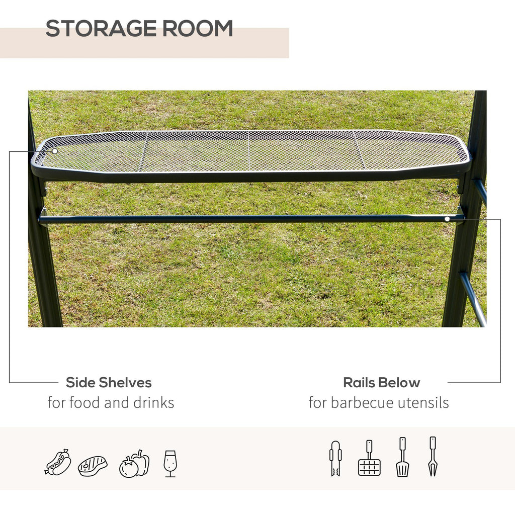 - PIANI D'APPOGGIO: Il nostro gazebo ha due ripiani laterali che offrono spazio per riporre cibi e bevande, mentre i pali sotto i ripiani possono essere utilizzati per appendere gli attrezzi del barbecue