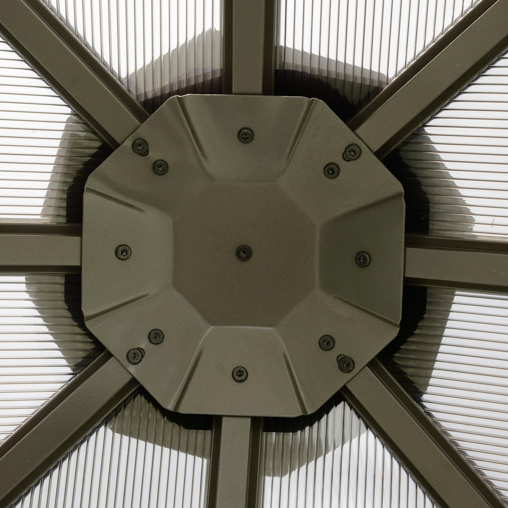 - TETTO IN POLICARBONATO: Il tetto a punta del gazebo è realizzato con un pannello in policarbonato per proteggerti dai raggi UV, pioggia leggera e vento.